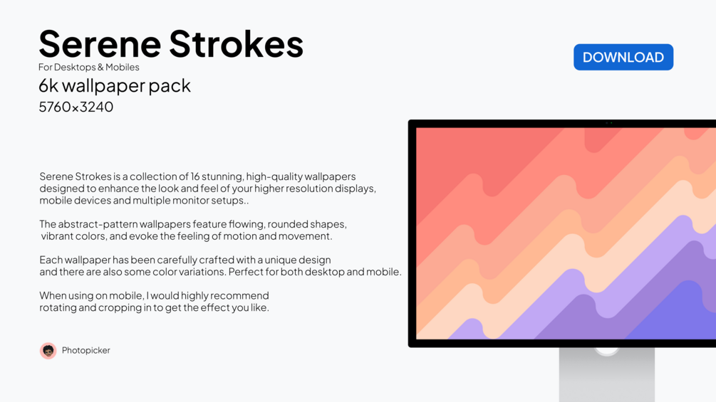 Serene Strokes is a collection of 16 stunning, high-quality wallpapers designed to enhance the look and feel of your higher resolution displays, mobile devices and multiple monitor setups..